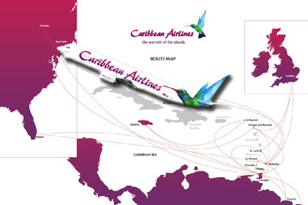Caribbean Airlines route map | Route map, Air jamaica, Airlines