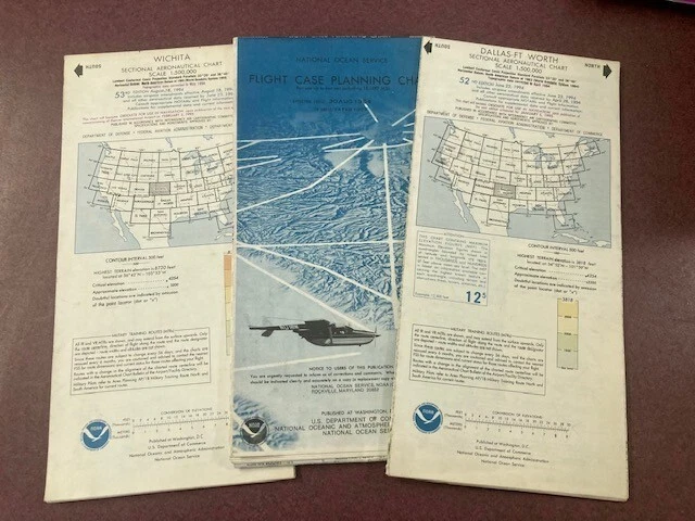 Lot of 3 Vintage Aeronautical Flight Planning Charts Maps Dallas